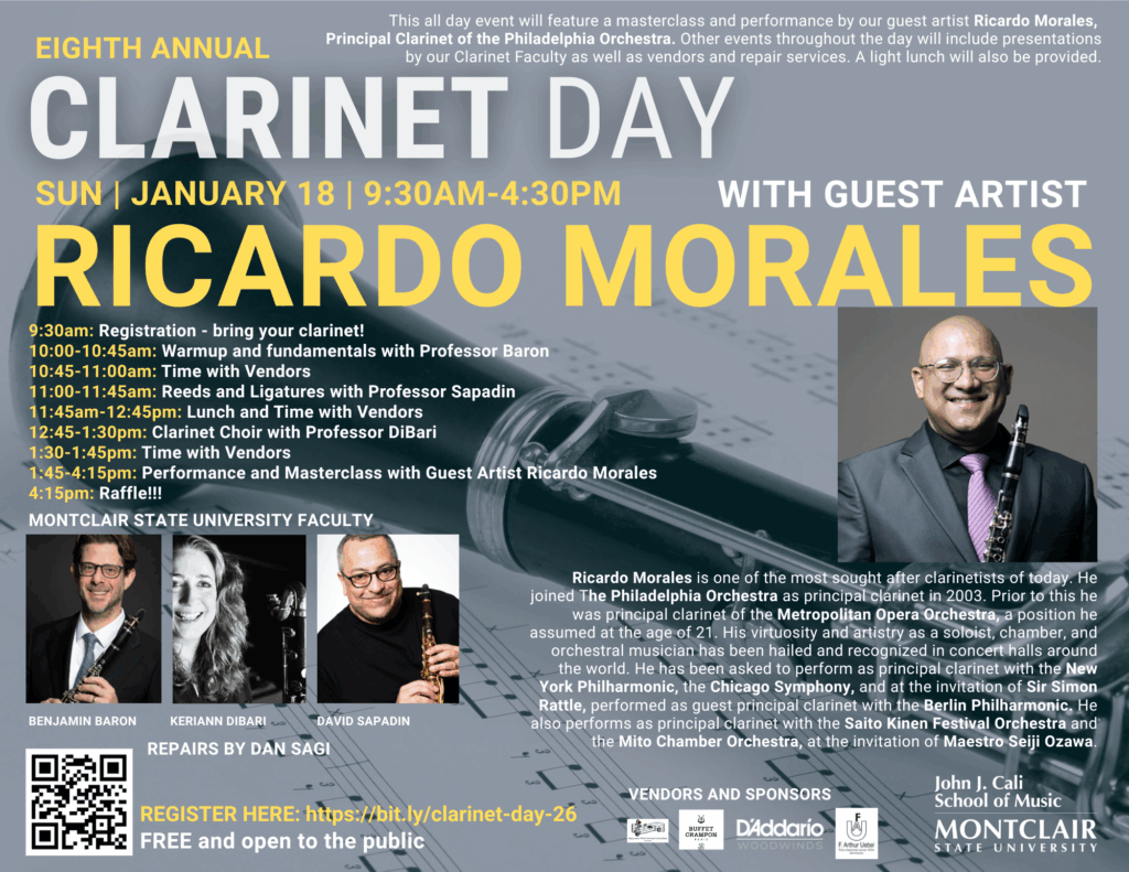 Sunday, January 18, 2026, 9:30am to 4:30pm. Excited to be back at the Cali Clarinet Day again, and what a program! Look at the graphic for a quick rundown of the terrific classes and performances, the amazing faculty at Montclair Cali, and of course the peerless guest artist Ricardo Morales. We’ll be there with all the usual toys big and small, and we are introducing our new selection of BAM France accessories including swabs, polishing cloths, and mouthpiece pouches. There will be so much stuff we won’t put it all out so if you stop by and you are looking for something you don’t see, ask! There might just be a secret stash.